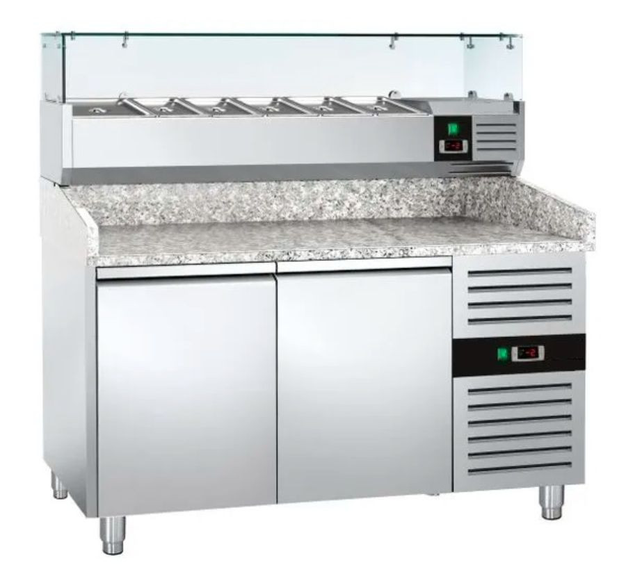 LUX Algor Gránit Pizzapult 2 Ajtós Oldal Aggregáttal Feltéthűtővel